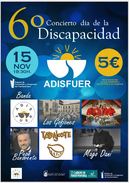 El Cabildo de Fuerteventura colabora con el VI concierto por el «Día de la Discapacidad», un evento organizado por Adisfuer, la Asociación de Discapacitados de Fuerteventura (Adisfuer), que tendrá lugar esta tarde a las 19.30 horas en el Palacio de Formación y Congresos.