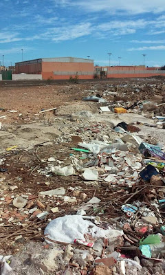 municipio de La Oliva y sus pueblos. Este río de basura junto a un colegio o la