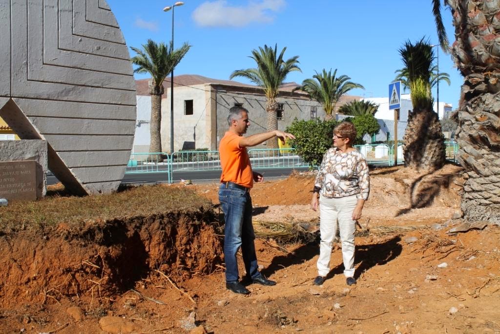 Las obras que se desarrollan en la Calle Real de Antigua, consisten en la demolición de mampostería volcánica de los parterres existentes en mal estado y la construcción de muros de hormigón forrados con mampostería de piedra caliza. Además, se ejecutará una acera paralela a la FV-20 con el objetivo de mejorar la accesibilidad a la plaza y unos muros lineales a modo de asiento, haciendo de este espacio un lugar para el disfrute de los vecinos.