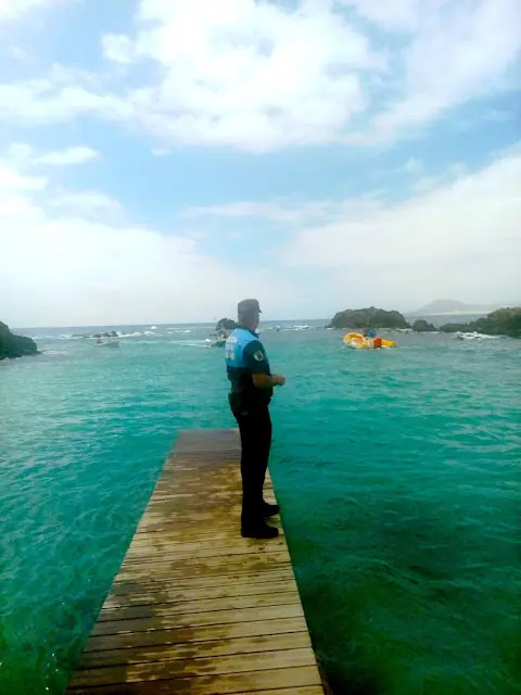 Agentes de la Policía Local de La Oliva serán los encargados de realizar las necesarias labores de vigilancia en esta zona de la Isla de Lobos, actuando para prevenir situaciones de peligrosidad entre los bañistas y las embarcaciones que acceden al puertito, informando a los patrones de la normativa vigente, y levantando actas de denuncia en caso de detectar infracciones, las cuales serán remitidas al Servicio Periférico de Costas, como órgano también competente.