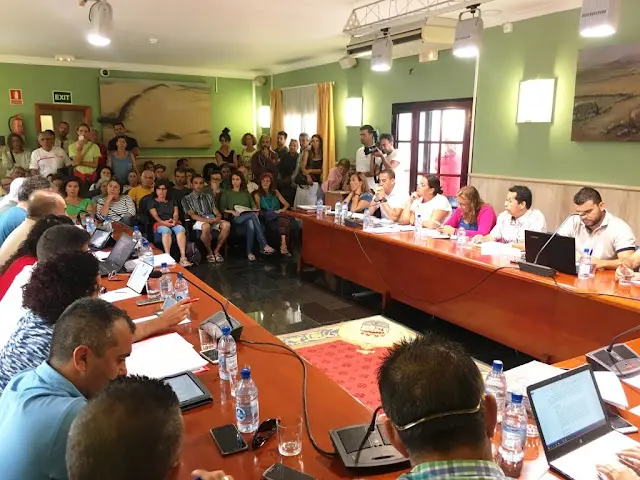 El punto segundo del orden del día se resolvió con el voto a favor de 17 de los 21 concejales del pleno, los que suman el grupo de gobierno (CC, NC y PPM) y los grupos PSOE y PP, y los cuatro votos en contra emitidos por los tres concejales de Votemos y el concejal no adscrito Pedro Amador.