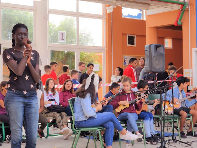 Laia y Naima recogieron su premio durante el acto del IES La Oliva, celebrado también hoy por este Día Internacional para la Eliminación de la Violencia contra la Mujer, acto además enmarcado dentro del programa 'Erasmus _ LORESU' en el que participa el centro. Los alumnos de La Oliva lanzaron sus propios mensajes, elaboraron piezas teatrales, mostrando el trabajo desarrollado previamente con el profesorado en las aulas con el objetivo de promover la igualdad y la sensibilización para erradicar la violencia de género a todos los niveles.