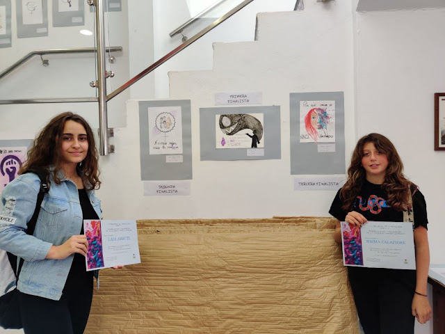 En el Centro Cultural Raíz del Pueblo recibieron también su premio las alumnas del IES La Oliva que obtuvieron el segundo y tercer premio del concurso, Laia Arruti con Á(r)mate mujer e inicia la revolución, y Naima Calafiore con Por qué callar si nací gritando.