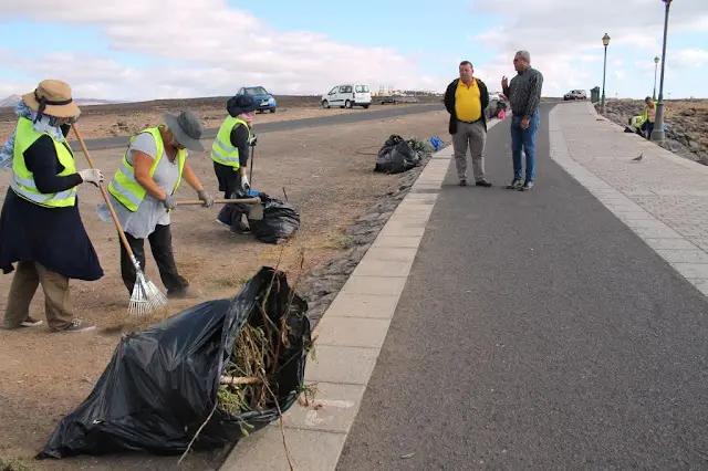 con la limpieza del paseo costero que une ambas localidades en un tramo que