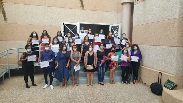 Más de doscientas personas se han formado este año en los cursos de formación en idiomas para la atención turística puestos en marcha por el Cabildo de Fuerteventura, a través de la Consejería de Empleo, en colaboración con Radio ECCA Fundación Canaria. La consejera de Empleo, María Jesús de la Cruz, y la delegada de Radio ECCA en Fuerteventura, Carmen Nieves Hernández, dieron clausura a los cursos este lunes, día 30 de junio, en un acto celebrado en el Auditorio Insular de Fuerteventura.