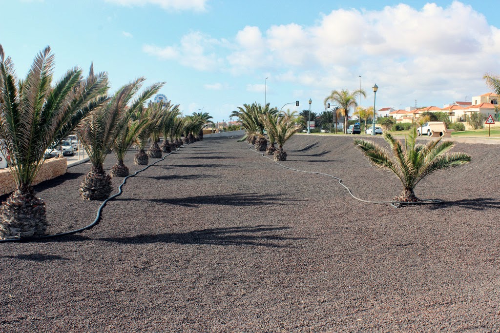 de 180 metros cúbicos de picón y el mantenimiento de las palmeras existentes en