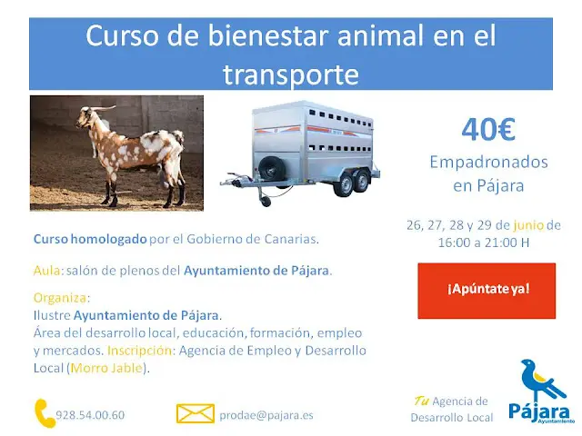Fuerteventura.- El Ayuntamiento de Pájara, a través de la Concejalía de Formación, que dirige Marisol Placeres, impartirá un curso de bienestar animal en el transporte, dentro del Plan Formativo de cursos con descuentos para desempleados empadronados en el municipio que lleva a cabo desde la Agencia de Formación y Desarrollo Local.