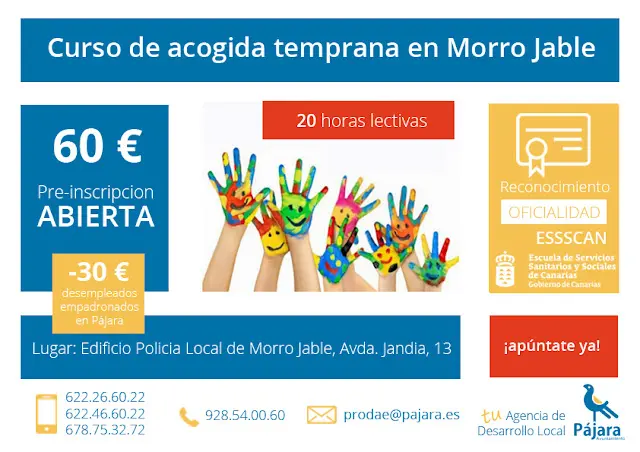 Pájara, Fuerteventura a 1 de marzo de 2018.- La Concejalía de Formación del Ayuntamiento de Pájara, que dirige Marisol Placeres, continúa ampliando su catálogo de cursos de formación con descuentos para desempleados que ofrece a través de la Agencia de Empleo y Desarrollo Local con el objetivo de acercar la formación al municipio y favorecer la inserción laboral. Entre las nuevas ofertas se encuentran los cursos de acogida temprana, animación para la tercera edad y transporte escolar adaptado.