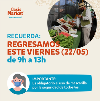Se establece la obligatoriedad del uso de mascarilla para clientes y se recomienda el uso de guantes y la desinfección periódica de manos con los geles instalados en el recinto. Para facilitar el acceso, Oasis Market dispone de parking gratuito.