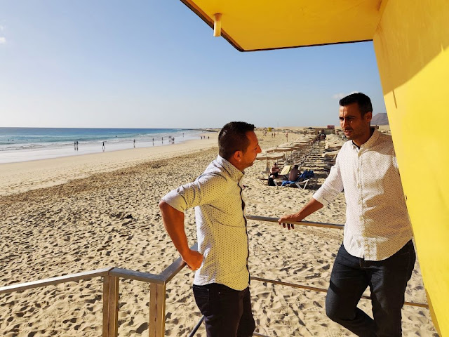 El alcalde de La Oliva, Isaí Blanco, y el concejal de Seguridad Ciudadana y Playas, Oliver González, visitaron las Grandes Playas de Corralejo para hacer un seguimiento del servicio, y para "agradecer personalmente la labor que realizan los socorristas". "Un año más, han completado con éxito todas las incidencias que se les han presentado, y gracias a ello miles de bañistas han podido disfrutar de nuestras playas con seguridad", trasladó Isaí Blanco, que deseó también "seguir en esta línea en lo que queda de verano".