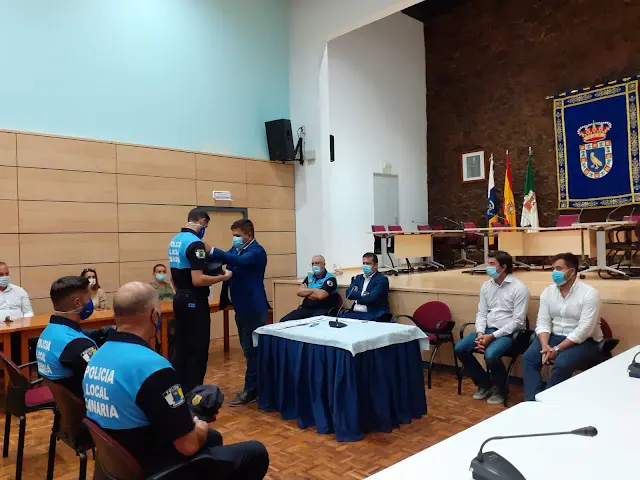 El alcalde de Pájara, Pedro Armas, presidió hoy el acto de toma de posesión de un inspector y dos nuevos agentes de la Policía Local, que se celebró en el salón de plenos del consistorio, y con el que se pretende reforzar la actual plantilla existente.