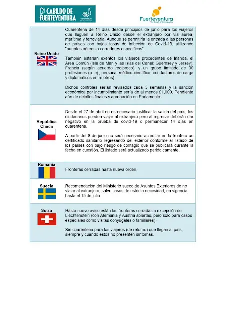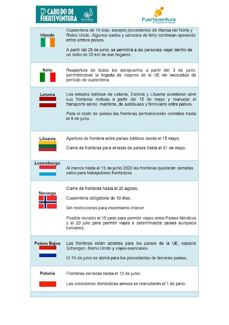 El Patronato e Turismo de Fuerteventura, ha elaborado un cuadro de previsión de Apertura de Fronteras Europeas