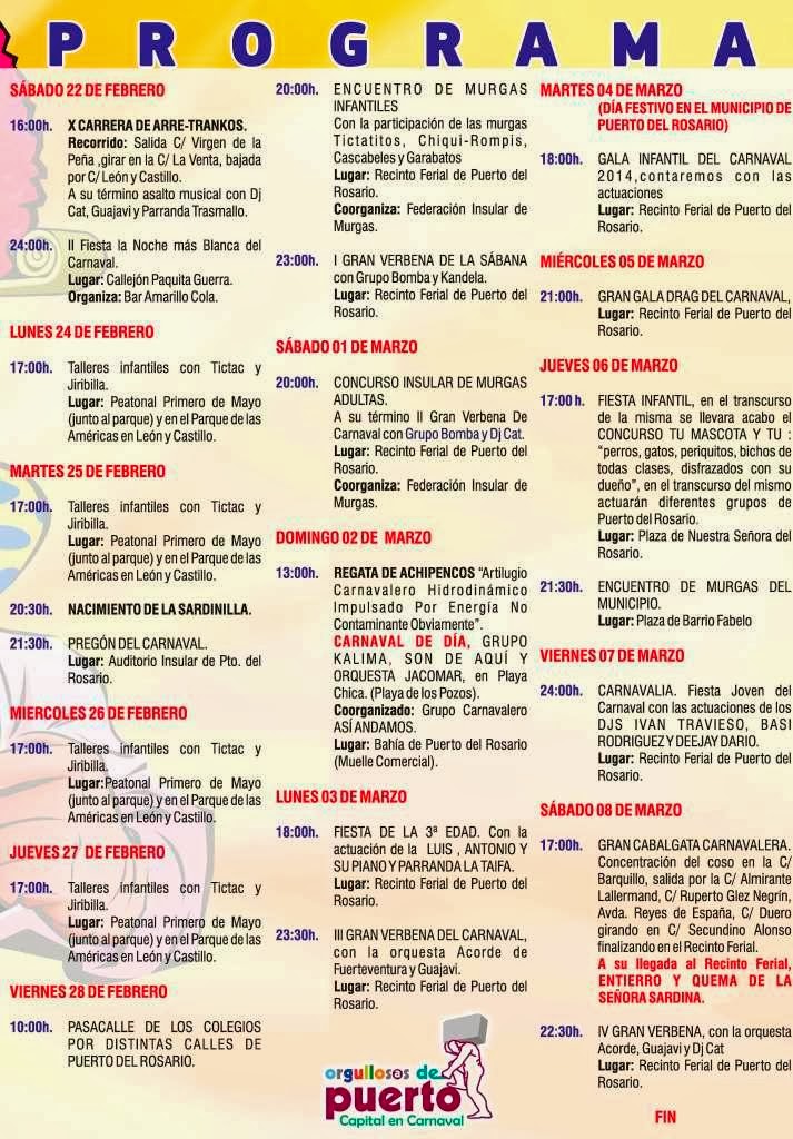 Fuerteventura .- Programa Carnaval de Puerto del Rosario 2014 del 22 de Febrero al 8 de marzo