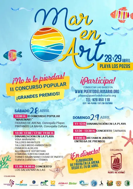 Las inscripciones para participar en la modalidad de Esculturas de Arena y Pintando la Bahía están abiertas y las bases de cada una de las diferentes modalidades pueden descargarse a través de las web municipal www.puertodelrosario.org y las consultas se pueden hacer en el teléfono 928 85 01 10. Playas ( Ext 148) y Cultura ( Ext 236 )