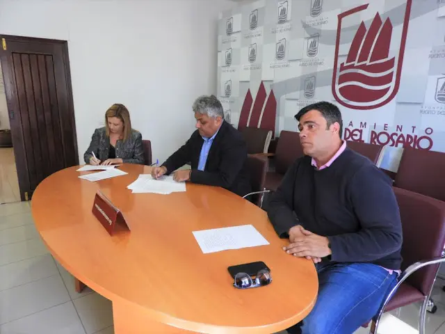 salones del Ayuntamiento de Puerto del Rosario, a la firma del Convenio de
