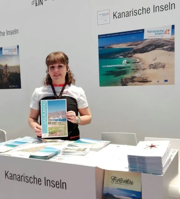 La promotora majorera en Alemania, Adelina Diaz , da buena cuenta de las excelencias turísticas de nuestro destino ante profesionales y publico final que asista a dicha feria