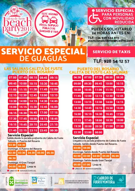 Este Servicio Especial de Guaguas de Madrugada del transporte público, afirma la concejala de Antigua, Deborah Edgington, es una colaboración importantísima por parte del Cabildo de Fuerteventura, que agradecemos y queremos que se consolide para próximos años, por suponer un impulso a la asistencia, además de aportar seguridad en los desplazamientos de las personas que quieran disfrutar la Beach Party hasta altas horas de la madrugada.