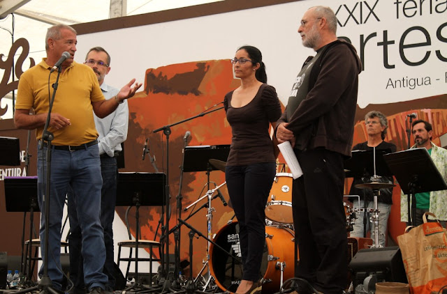 La intervención del Premio Insular de Artesanía estuvo acompañada de un grupo de artesanos y artesanos que subieron con Silverio López al escenario en apoyo a las críticas palabras del galardonado, sobre el desamparo en el que se encuentra el colectivo artesanal mientras no se responda con hechos y no con palabras a las justas reivindicaciones que solicita el gremio, algunas incluso recogidas en la Constitución, afirma López Márquez.