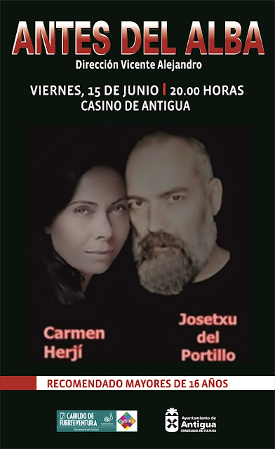 La colaboración que mantienen las áreas de cultura del Cabildo de Fuerteventura y el Ayuntamiento de Antigua permite que este viernes a las 20:00 horas en el Casino de Antigua, podamos disfrutar de la representación teatral Antes del Alba, interpretada por el actor Josetxu Portillo, la actriz, Carmen Herjí y dirigida por Vicente Martín, todos ellos residentes en Fuerteventura y con una dilata trayectoria teatral mostrada en numerosos trabajos escénicos presentados en la isla en los últimos diez años.