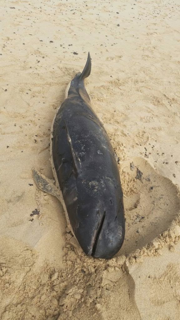 de cetáceo, (probablemente una cría de calderón tropical Globicephala macrorhynchus) fue localizado