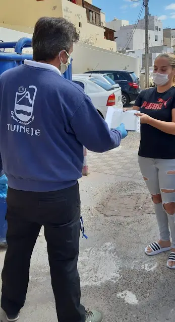 Protección Civil de Tuineje también colabora en las tareas de reparto de tabletas, ordenadores y material didáctico que los diferentes centros educativos necesitan hacer llegar a su alumnado ante la situación provocada por la crisis sanitaría de la COVId-19.