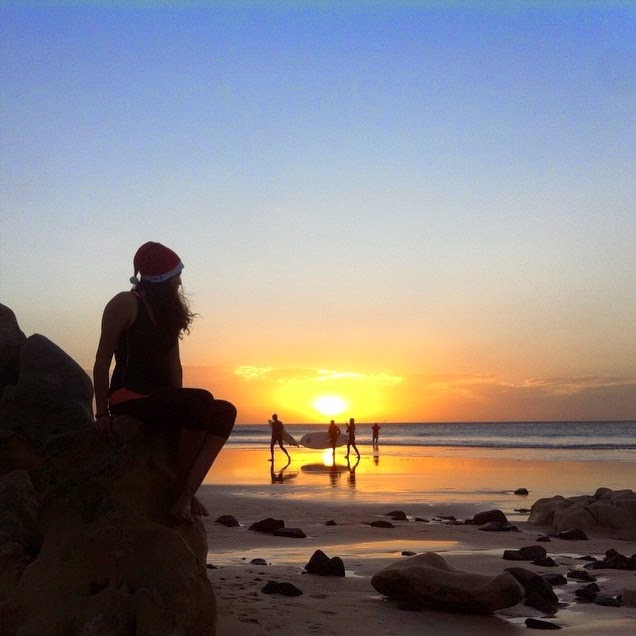 surfistas, en un atardecer en la playa norteña.