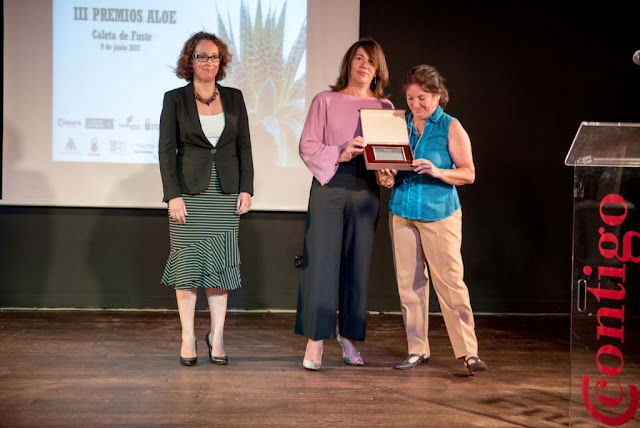 la entrega de los Premios Aloe, realizados en basalto por el escultor