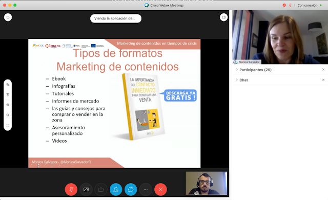 Fuerteventura.- Una treintena de personas participó en el taller on line promovido esta mañana por el Centro CIDE de la Cámara de Comercio de Fuerteventura para enseñar a crear y curar contenidos de Marketing a fin de “llegar al cliente potencial en tiempos complicados”, explicó la ponente y experta en Ventas, Marketing y Comunicación, Mónica Salvador.