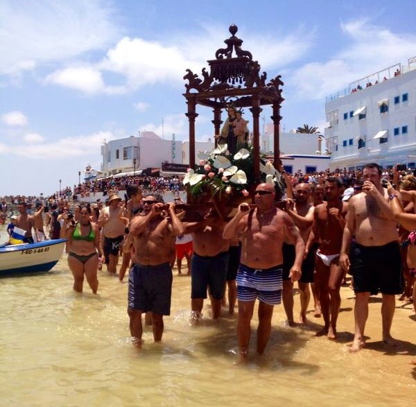 marineros por las calles y la bahía de Corralejo. Nuestra Señora del Carmen