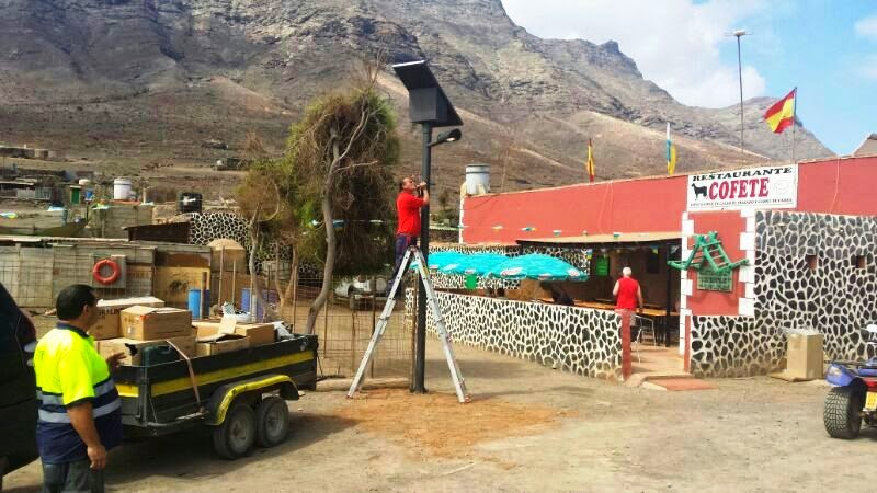 El Ayuntamiento de Pájara y el Grupo de Desarrollo Rural (GDR) Maxorata han ejecutado un proyecto de alumbrado fotovoltaico en el asentamiento de Cofete consistente en la instalación de once farolas autónomas alimentadas por placas solares y con un sistema 'starlight' para evitar la contaminación lumínica.