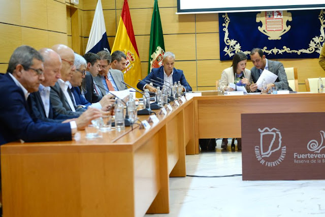 La delegación de el Gobierno de Canarias desplazada en la mañana de hoy a la isla de Fuerteventura mantuvo un encuentro con la Corporación insular, con su presidente Blas Acosta al frente y, los representantes de los seis ayuntamiento majoreros y agentes del sector turístico y comercial de la Isla, en la que repasaron las distintas iniciativas y proyectos que afectan al turismo, la industria y el comercio.