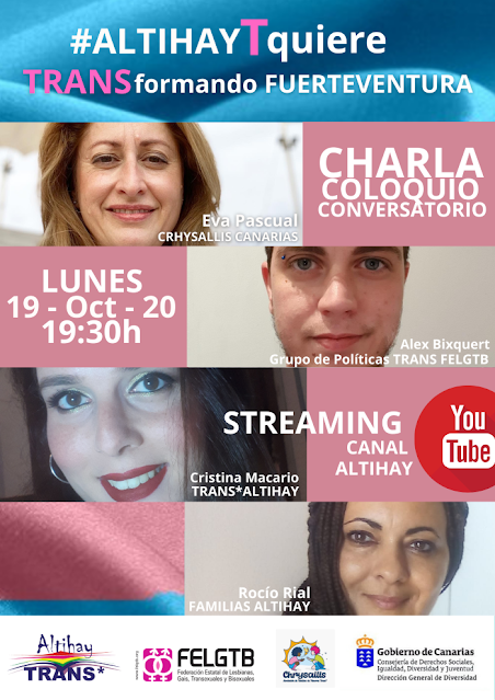 El Grupo TRANS* de ALTIHAY Fuerteventura organiza hoy 19 de Octubre a las 19:30h una charla - coloquio – conversatorio a través de su canal de YouTube donde se abordarán diferentes asuntos que forman parte de las diferentes realidades TRANS*.