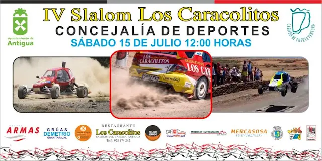 Las Fiestas en Honor a Nuestra Señora del Carmen en Las Salinas comienzan celebrando una de las pruebas del motor más importantes en el calendario insular de slaloms como es el IV Slalom Los Caracolitos-Concejalía de Deportes en el que participan escuderías, equipos y clubs deportivos de Tenerife, Gran Canaria, Lanzarote y Fuerteventura, al ser además puntuable la clasificación y tiempo obtenido para el Campeonato de Canarias de Slalom.