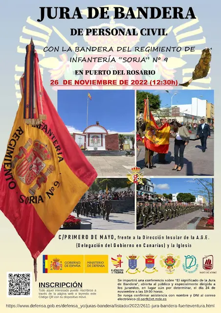 Bandera’ de personal civil con la Bandera del Regimiento de Infantería “Soria”