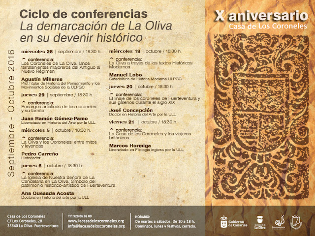 programación del ciclo de conferencias 'La demarcación de La Oliva en su