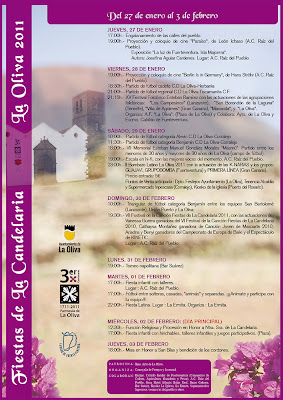 Y a las 19:30 horas comenzará el VII Festival de la Canción Fiestas de La Candelaria 2011, en el que actuarán la ganadora del año anterior, Vanessa Guerra, Cathaysa Montañez ganadora de Canción Joven de Maxoarte 2010, Ariadna y Benyi ganadores del Campeonato de Europa de Baile y el Espectáculo de Kinetic, en la A.C. Raíz del Pueblo.