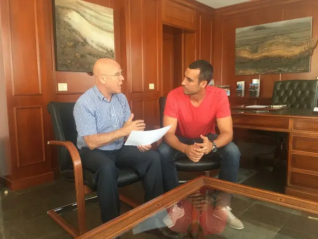 La Oliva, a 16 de agosto de 2018. El alcalde de La Oliva, Isaí Blanco, mantuvo este miércoles un encuentro informativo con el Diputado del Común, Rafael Yanes, para realizar un seguimiento sobre los asuntos que el Alto Comisionado del Parlamento de Canarias mantiene abiertos en el municipio.