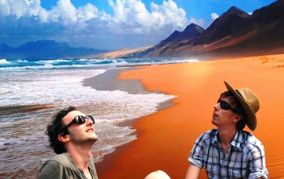 Los alumnos del Centrum Europejskie Natolin –procedentes de diversos países de la UE- han participado en una experiencia dirigida a redes sociales. Una fotografía de la playa de Cofete de seis metros de largo ha sido el singular 'photocall' donde por unas horas pensar (y posar) cómo sería estar sobre esa arena.