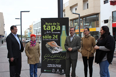 Este martes, 07 de febrero, a las 10:30h, en la zona peatonal de Primero de Mayo, entre las calles Virgen del Rosario y Profesor Juan Tadeo Cabrera, se presentó la primera Ruta de Tapas, una acción de dinamización comercial y de ocio que pretende acercar al consumidor a la variada oferta de bares y cafeterías de la capital y degustar por un precio de 2 €, una tapa y una consumición, a base de cerveza, vino o mosto.
