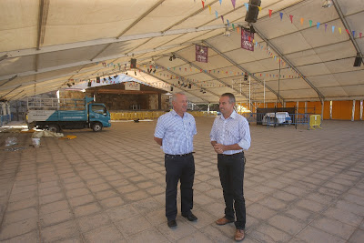Pedro Martínez, consejero en el Cabildo de Parque Móvil, Seguridad y Emergencias, y Marcelino Cerdeña, alcalde de Betancuria, visitaron esta mañana la Vega de Río Palmas donde se desarrollan los preparativos. Ambos dirigentes coincidieron en señalar las labores de coordinación que han sido necesarias "para conciliar, por un lado, un elaborado programa de actos y eventos por parte de la Consejería de Cultura del Cabildo, y por otro todos los requerimientos necesarios para que las alrededor de 35.000 personas que se espera acudan en algún momento a la Vega cuentan con las mayores comodidades posibles y con un dispositivo de seguridad acorde con la magnitud de este acontecimiento", dijo Pedro Martínez.