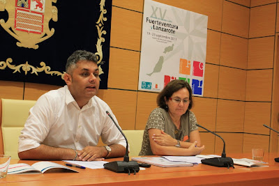 El consejero de Educación, Cultura y Patrimonio Histórico del Cabildo, Juan Jiménez, acompañado de la historiadora y técnico responsable de las jornadas en la institución, Rosario Cerdeña, dio a conocer esta mañana en rueda de prensa las principales claves de la presente edición de unas jornadas que "pretenden establecer una plataforma de conocimiento que permita elevar a Fuerteventura y Lanzarote a la altura de la bibliografía existente sobre el resto de islas del Archipiélago".