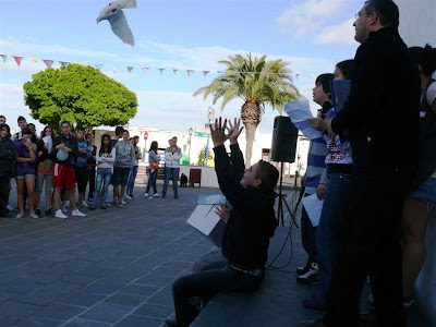 Con la suelta de palomas blancas y de globos se culminó una celebración que ha pretendido concienciar al alumnado del IES La Oliva sobre la importancia de mantener vivos unos valores fundamentales absolutamente necesarios para establecer unas relaciones más fluidas y pacíficas entre los pueblos.
