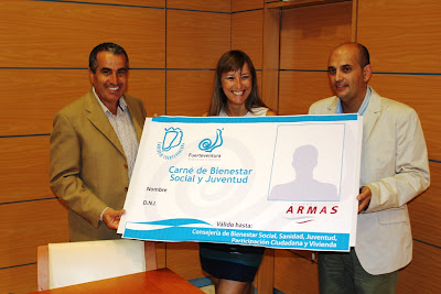 Más de 12.000 vecinos de Fuerteventura que pertenecen a colectivos sociales especialmente afectados por la crisis podrán beneficiarse a partir de ahora de los nuevos descuentos a aplicar en las tarifas de viajes interinsulares en los buques de Naviera Armas, de acuerdo con el convenio de colaboración firmado esta mañana entre la delegada comercial de Naviera Armas, Gema Ibáñez, y el presidente del Cabildo de Fuerteventura, Mario Cabrera; acompañados del consejero de Bienestar Social, Víctor Alonso.