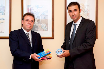 El gerente de Maxorata, Esteban Alfredo Pérez, y el director comercial de Tirma, Nicolás Santana, suscribieron recientemente un acuerdo mediante el que más de 40.000 tarrinas de queso fresco Maxorata se comercializarán a partir de hoy, viernes, de manera excepcional, junto con el dulce de membrillo o la pasta de guayaba de Tirma.