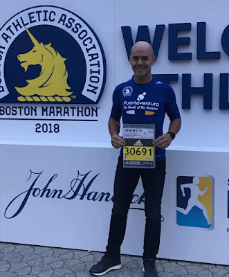 Boston 2018 , luciendo peto y dorsal “Fuerteventura, la Playa de