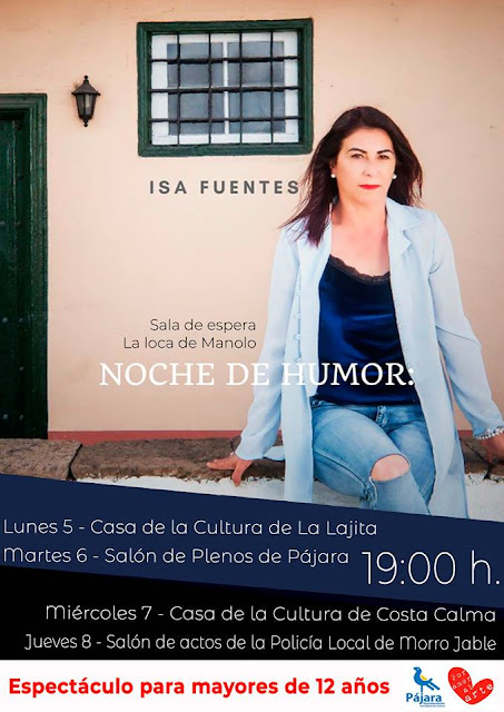 La monologuista palmera Isa Fuentes presentará sus historias 'Sala de espera' y 'La loca de Manolo' en La Lajita, Pájara, Costa Calma y Morro Jable, dentro del programa de actividades de la Concejalía de Cultura del Ayuntamiento de Pájara, que dirige Rosa Bella Cabrera.