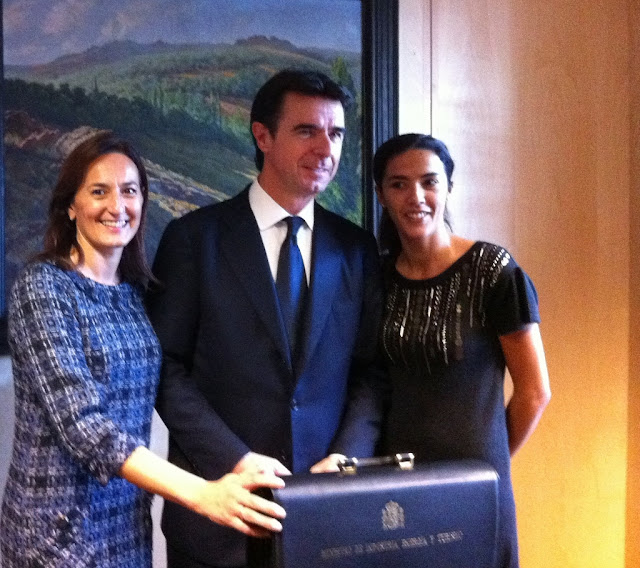 La presidenta del Partido Popular de Fuerteventura Águeda Montelongo y la diputada nacional, Celia Alberto, acompañaron este jueves al ministro de Industria, Energía y Turismo del Gobierno de España, José Manuel Soria, en el traspaso de cartera celebrado en la sede del Ministerio.
