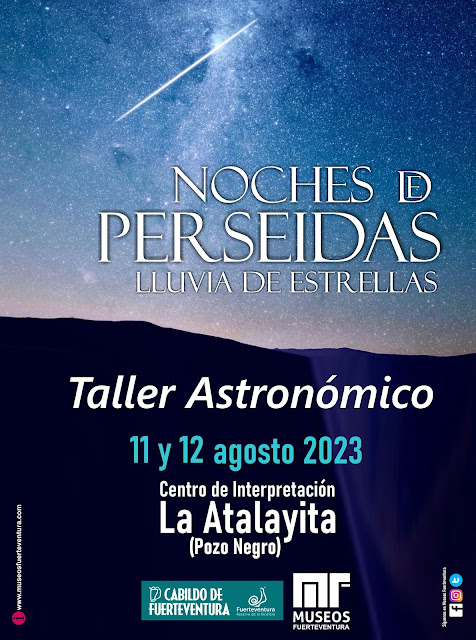 Museos Fuerteventura ha organizado para las noches del 11 y 12 de agosto una serie de actividades de observación de la lluvia de estrellas fugaces conocida como Las Perseidas y que tiene lugar cada año en esta misma fecha. El Poblado de la Atalayita será el escenario de estas actividades, que se desarrollarán a partir de las 20.00 horas, con la colaboración de AstroCiencia Nómada.