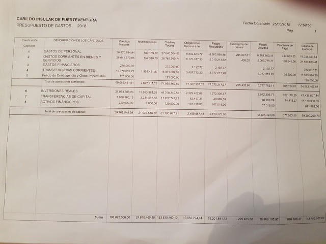 Presupuesto General del Cabildo de Fuerteventura para el ejercicio 2018,