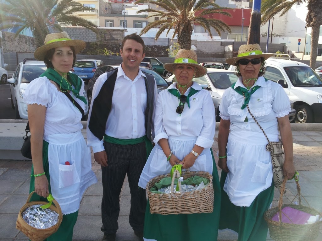 los productos típicos canarios. Ataviados con el traje típico canario, los